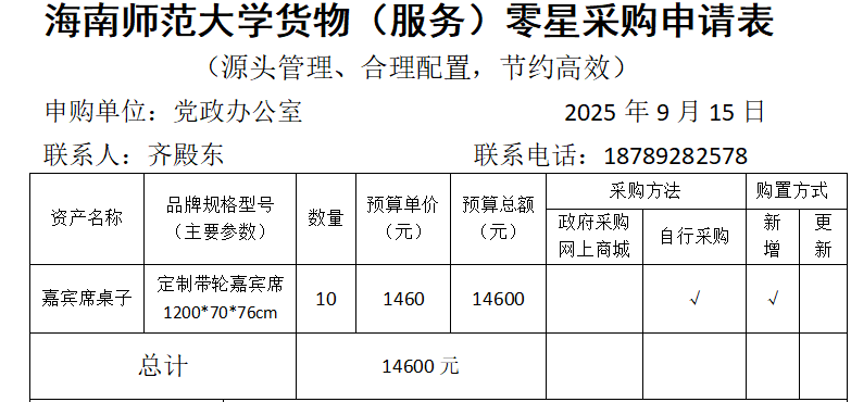 党政办公室采购办公家具公示