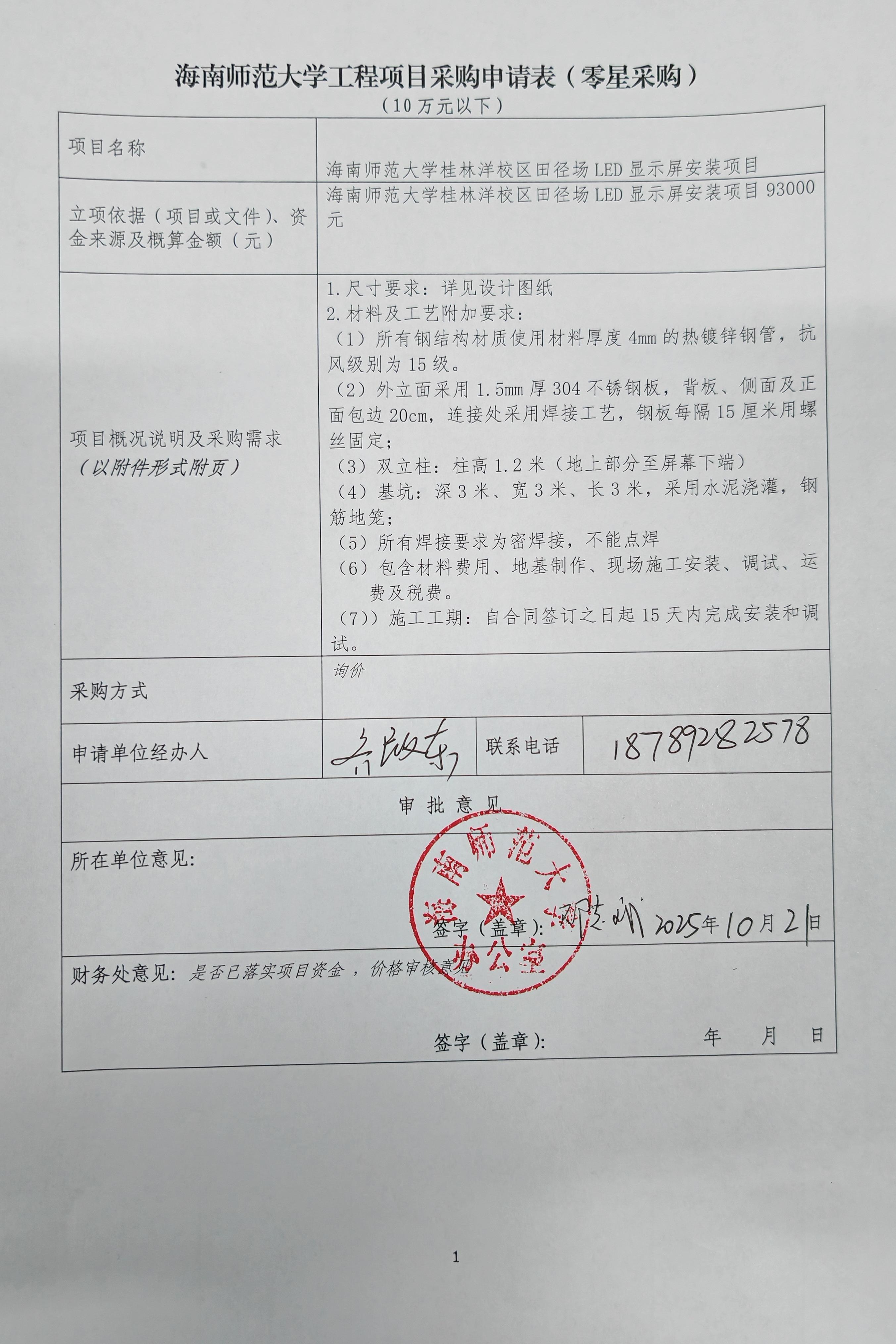 海南师范大学桂林洋桂林洋校区LED显示屏采购申请表