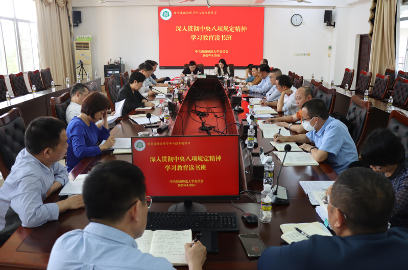 4月7日至8日,我校党委深入贯彻中央八项规定精神学习教育读书班在桂林洋校区第一公共教学楼三楼会议室举办。全体校党政领导班子成员,校党委委员、纪委委员参加会议。