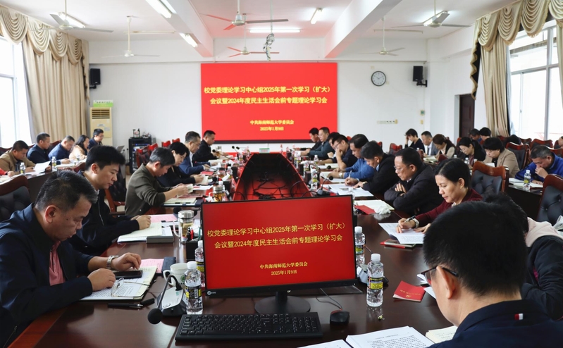 1月9日上午,我校在桂林洋校区第一公共教学楼三楼会议室召开校党委理论学习中心组2025年第一次学习(扩大)会议暨2024年度民主生活会前专题理论学习会议。校党委常委许玫、符刘才、杨兹举、刘汝兵、张引、王任斌、黄忆军,全体党委委员出席,校纪委委员、各二级党组织书记、宣传部负责人列席会议。会议由校党委书记许玫主持。