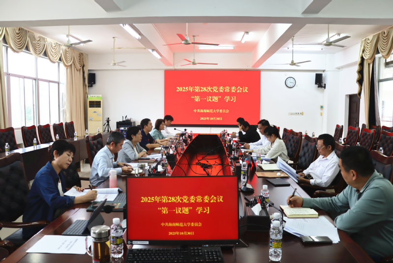 10月30日下午,学校党委常委会召开2025年第28次会议,传达学习习近平总书记在党外人士座谈会上的重要讲话精神,中共中央政治局委员、中央组织部部长石泰峰同志关于深入贯彻中央八项规定精神学习教育中央指导组暨中央层面工作专班总结会议上的讲话精神,省委常委、省委组织部长、省委教育工委书记纳云德同志在省委教育工委(扩大)会议上的讲话精神及《中共海南省委办公厅、海南省政府办公厅关于进一步做好近期安全生产工作的通知》《保密工作重要提示》,研究贯彻落实意见。校党委书记许玫主持会议。