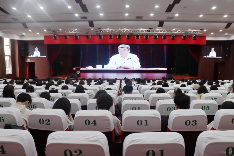 12月16日下午,我校组织全体师生党员参加2025年党员教育培训第三次集中大课,共同学习教育部党组书记、部长怀进鹏主讲的《深入学习贯彻习近平总书记关于教育的重要论述,以教育强国支撑引领中国式现代化》专题报告。校党委书记许玫出席并作动员讲话,校党委副书记符刘才主持活动。