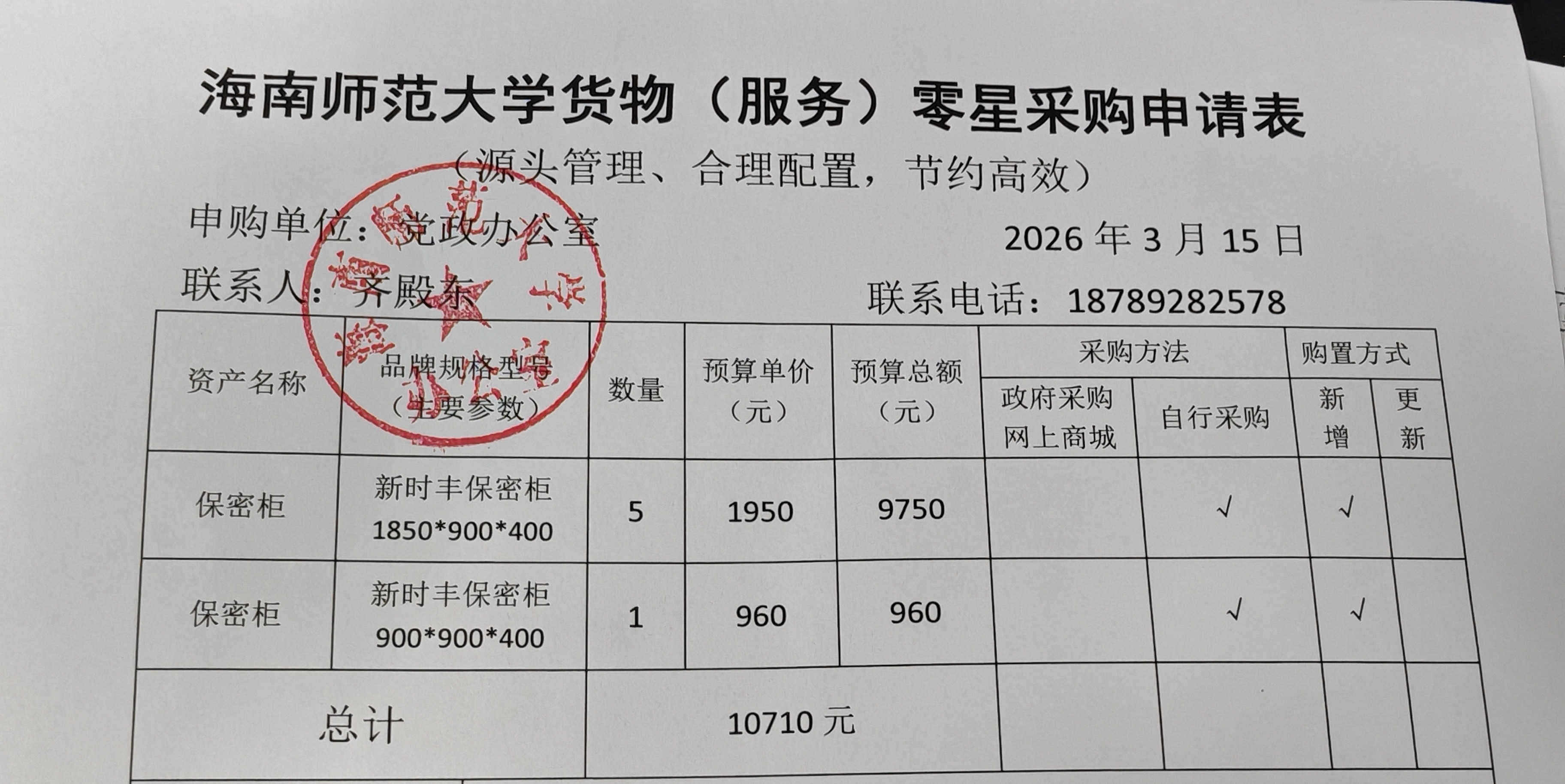 党政办公室保密柜采购公示