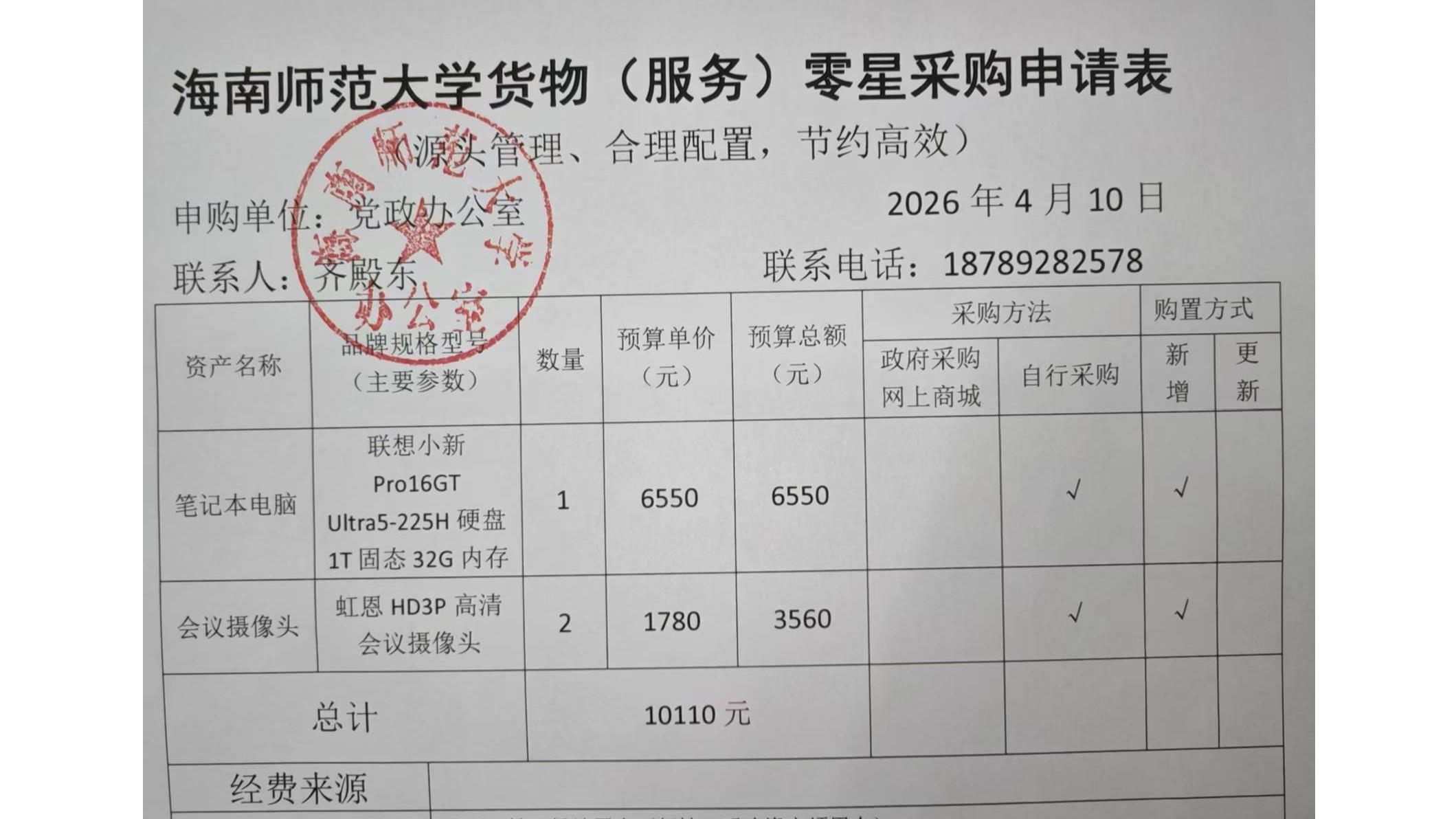 党政办公室笔记本电脑采购及会议摄像头公示