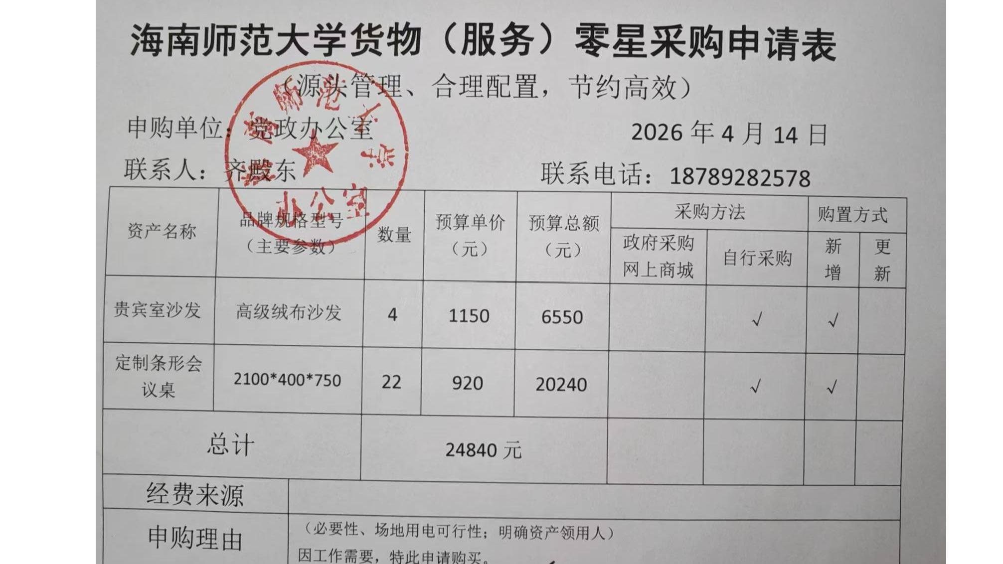 党政办公室会议室家具采购公示